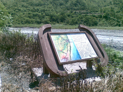 八里彎部落前的解說牌 訴說原住民被漢人欺負的血淚史